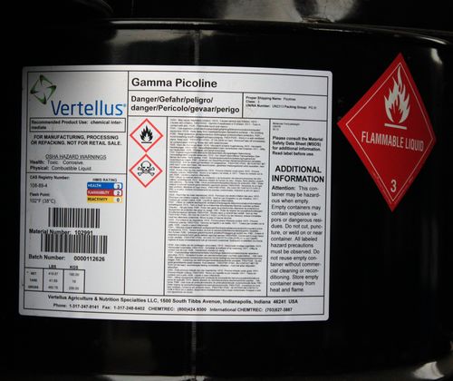 產(chǎn)品名 | 4-甲基吡啶 | 英文名 | γ-Picoline | 產(chǎn)品外觀 | 無色至淺黃色透明液體 | 包裝規(guī)格 | 190kg/桶(鐵桶) | 產(chǎn)地 | 美國 | 供應(yīng)商 | 凡特魯斯 | 應(yīng)用 | 農(nóng)藥、醫(yī)藥,催化劑,洗滌劑,紡織,固化劑,橡膠等 | 危險(xiǎn)類別 | 3類; | CAS NO. | 108-89-4 |