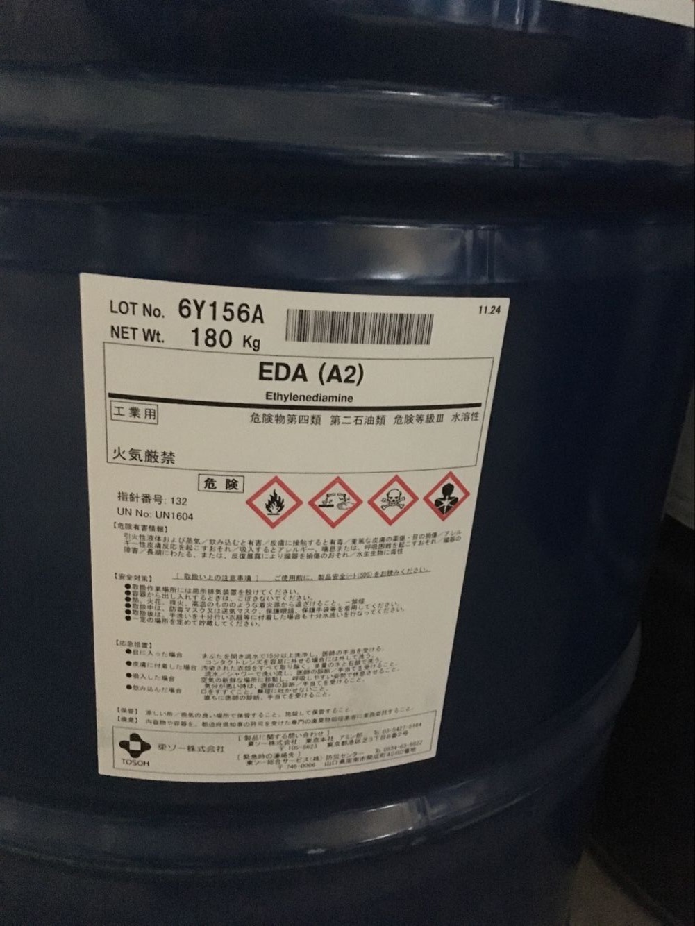 產(chǎn)品名 | 乙二胺 | 英文名 | Ethylenediamine(EDA) | 產(chǎn)品外觀 | 無色透明液體 | 包裝規(guī)格 | 180kg/桶(鐵桶) | 產(chǎn)地 | 日本 | 供應(yīng)商 | 東曹 | 應(yīng)用 | 農(nóng)藥、固化劑、聚酰胺樹脂等 | 危險類別 | 3類危化品(易制爆) | CAS NO | 107-15-3 |